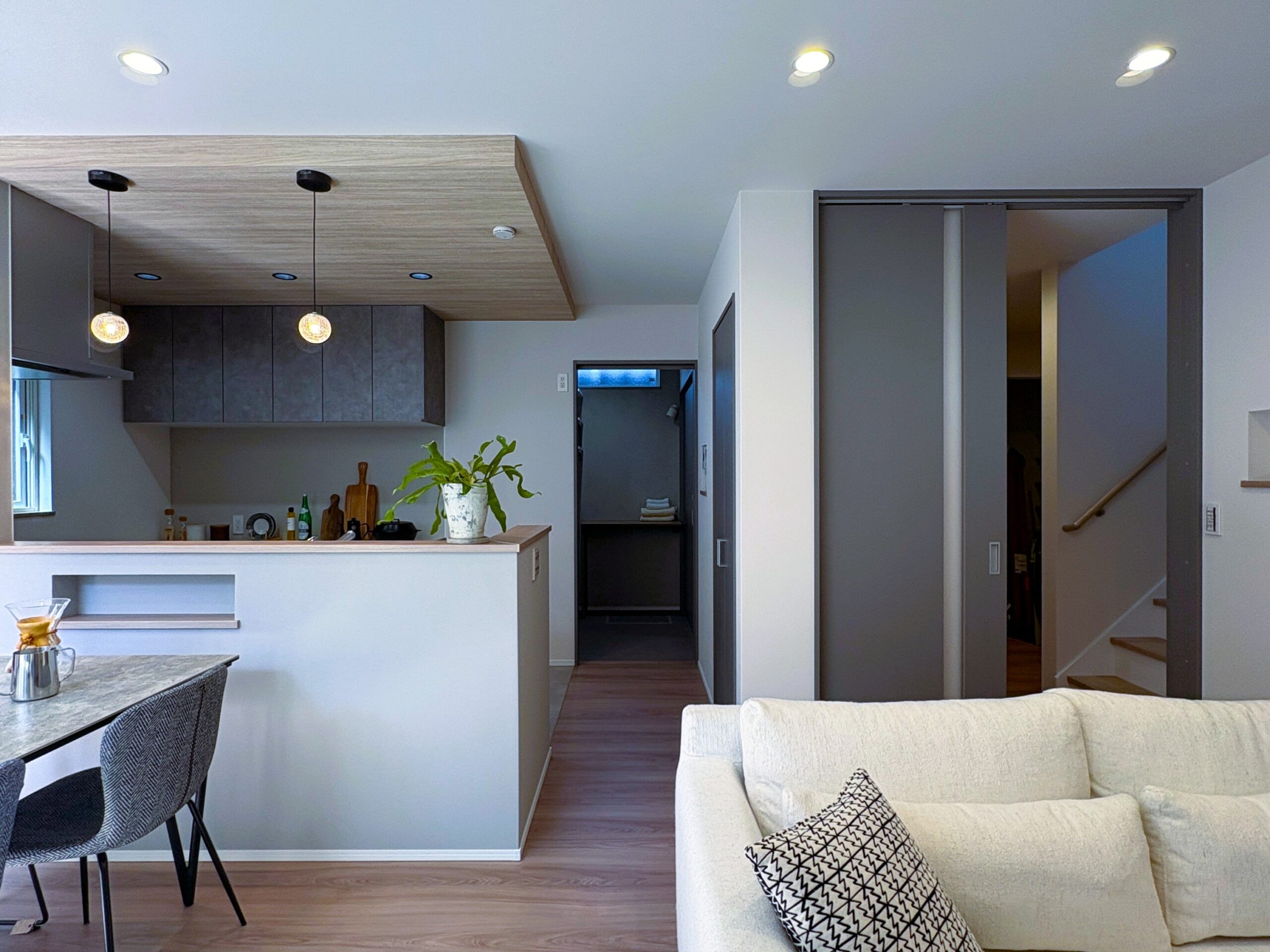 家の中をぐるりと回れる動線で、日々の家事がスムーズに進む住まい。