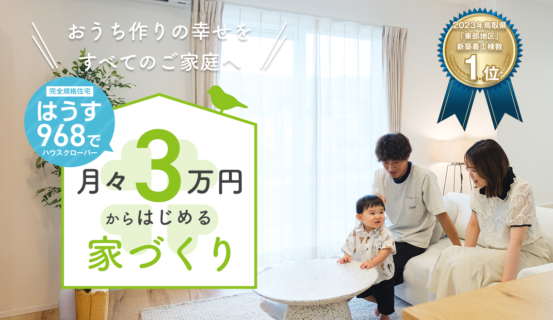 背伸びしない家づくりで、倉吉・東伯郡エリアのご家族に “ゆとり” を届けること。