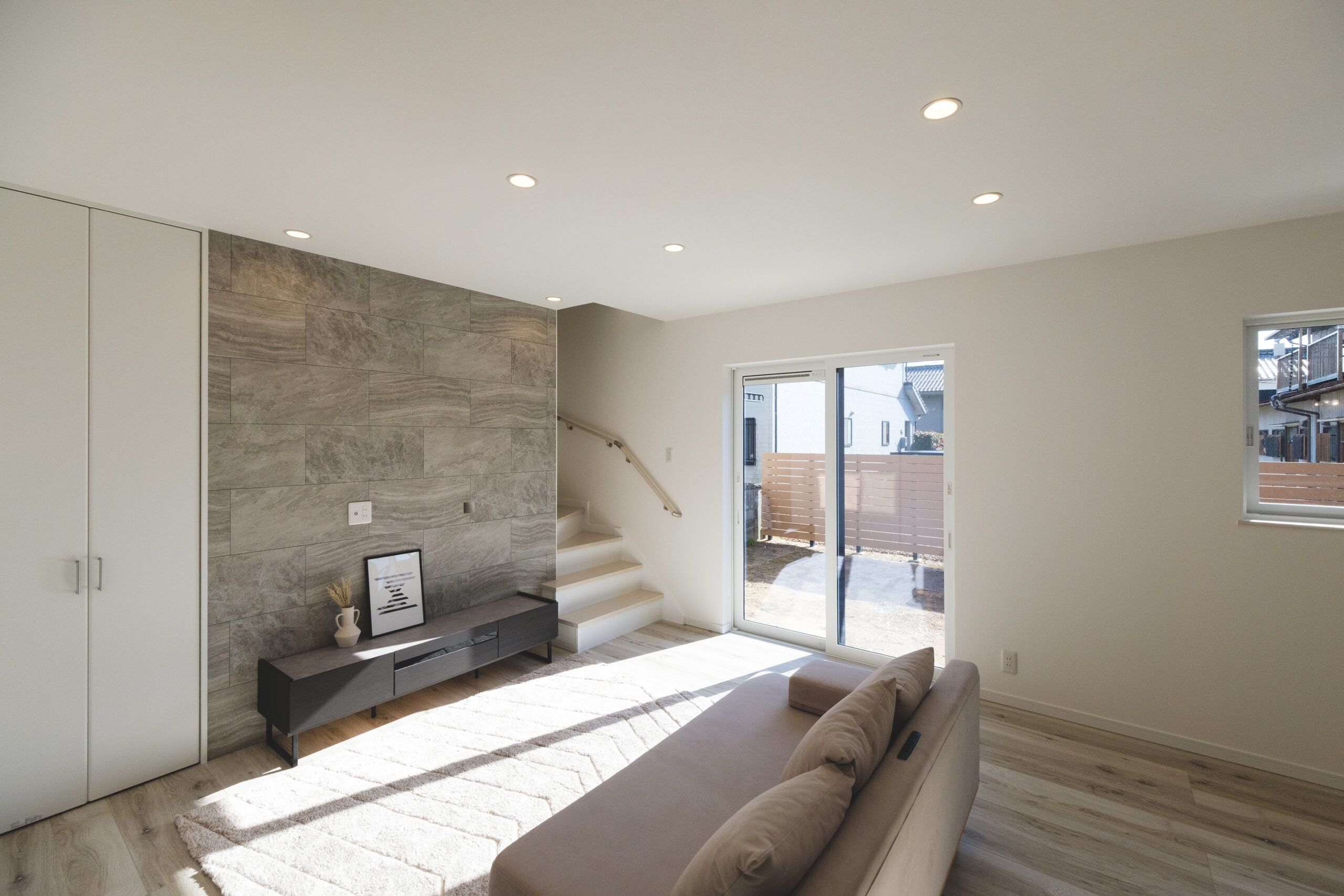 階段との位置関係が、空間にリズムを生みます。